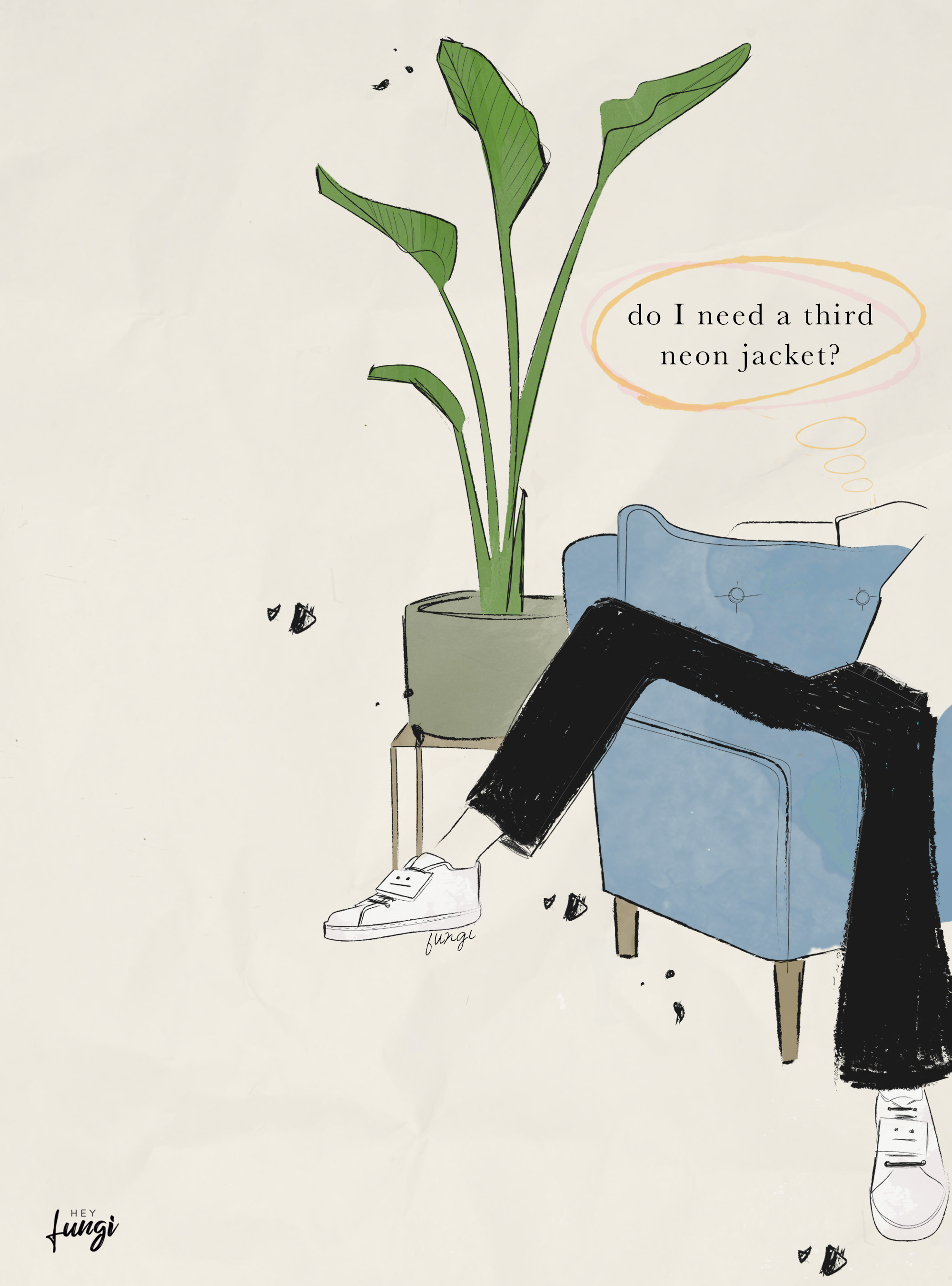 Mientras escribo este post aparecen burbujas de pensamiento sobre mi cabeza con recordatorios sobre mis listas de deseos en tiendas tanto físicas como virtuales: “tengo que comprarme esos pantalones de Asos para cuando llegue el otoño” o “esa lámpara de mesa de Ikea seguro luciría muy bien sobre esa mesita de noche que había visto en aquella tienda… ¡Oh mira, una oferta!”./ While I write this post a thought bubble floats over my head with reminders about my consumption desires: “I have to buy those Asos pants before fall arrives” or “that Ikea table lamp would look amazing on that bedside table that I had seen in that store… Oh look, there’s an offer!”.