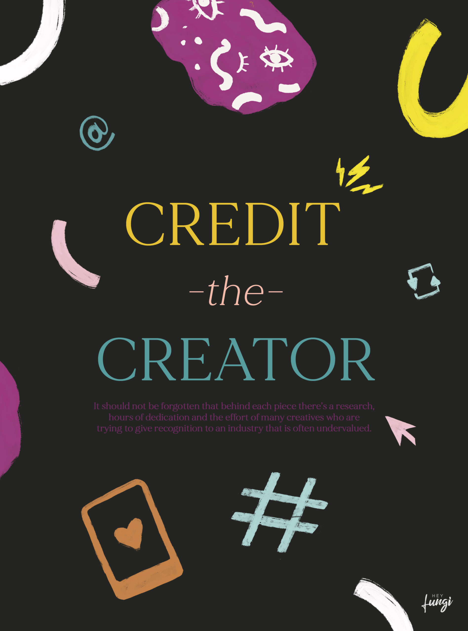 ¿Recuerdan los proyectos escolares dónde se nos pedía incluir citas bibliográficas y referencias? Parece que Internet va tan rápido que se nos ha olvidado como dar crédito al creador, y más que protocolo se trata de un acto de respeto para quienes vivimos del trabajo creativo. No hay que olvidarse de que detrás de cada pieza hay una labor de investigación, horas de dedicación y el esfuerzo de muchos creativos que estamos intentando dar un reconocimiento a una industria que muchas veces se menosprecia./ Do you remember school projects where we were asked to include bibliographic citations and references? The internet is going too fast that it seems we have forgotten how to credit the creator, and more than a protocol it is an act of respect for those of us who live from creative work. It should not be forgotten that behind each piece there’s a research, hours of dedication and the effort of many creatives who are trying to give recognition to an industry that is often undervalued.