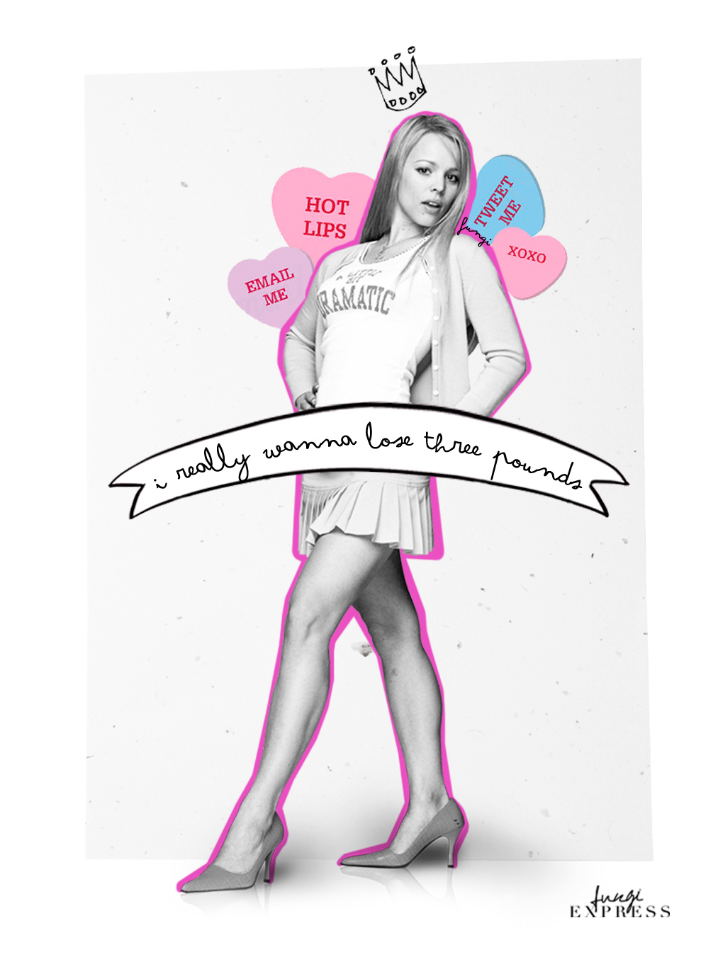 Uno de los clichés más comunes es bajar de peso, sino pregúntenle a Regina George cuando dice “I really wanna lose three pounds”. ¡Te comprendemos, Regina! Bajar de peso es sencillo, el asunto es mantenerlo para no volver a subirlos. ¿Más propósitos de año nuevo para millennials? Conseguir pareja, ir al gym y tomarte la selfie, leer libros famosos para tomarles fotos y compartirlas en Instagram./ One of the most common resolutions: to lose weight, if you don’t trust me, go and ask Regina George: “I really wanna lose three pounds”. Regina, you understand us! To lose those extra pounds is simple, the problem is to do not gain that weight again. More resolutions for millennials? Get a couple, go to the gym and take the selfie, read famous books to share the cover with a matcha latte on Instagram, etc.