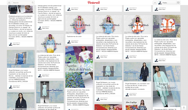 El objetivo es interpretar las obras de arte del Museo a través de las colecciones presentadas en la más reciente edición del Mercedes Benz Fashion Week Madrid, compartiendo esas imágenes en un board especial, en la cuenta oficial de Pinterest del Museo, permitiendo que los amantes del arte y la moda puedan apreciar las conexiones existentes entre ambos conceptos./ The aim is to interpret artworks from the Museum through the trends and collections presented in the latest edition of the Mercedes Benz Fashion Week Madrid, sharing these imagenes on special boards using the official Pinterest account of the Museum, allowing art and fashion lovers to appreciate the connections between the two concepts.