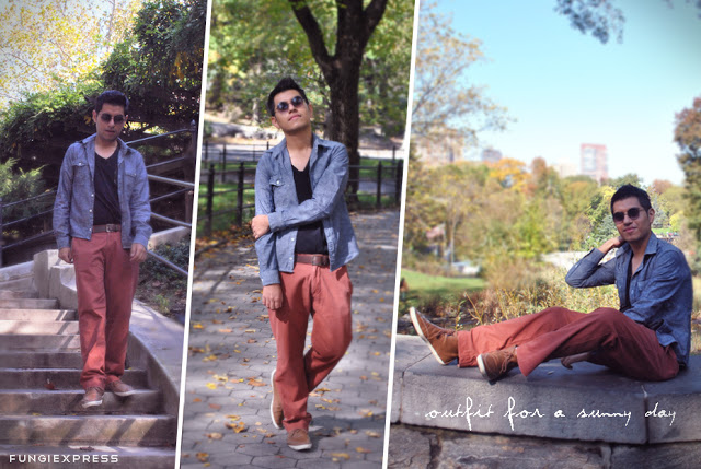 Para este día decidí usar algo más alegre, y como no habría más lluvia saqué mis sunnies redondos y mis pantalones naranja para entrar en el mood otoñal./ For this sunny day I decided to use something more cheerful, so I wore my orange pants and my round sunnies to get into the autumn mood.