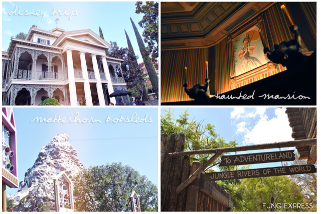 Haunted Mansion, Matterhorn bobsleds, Adventureland.