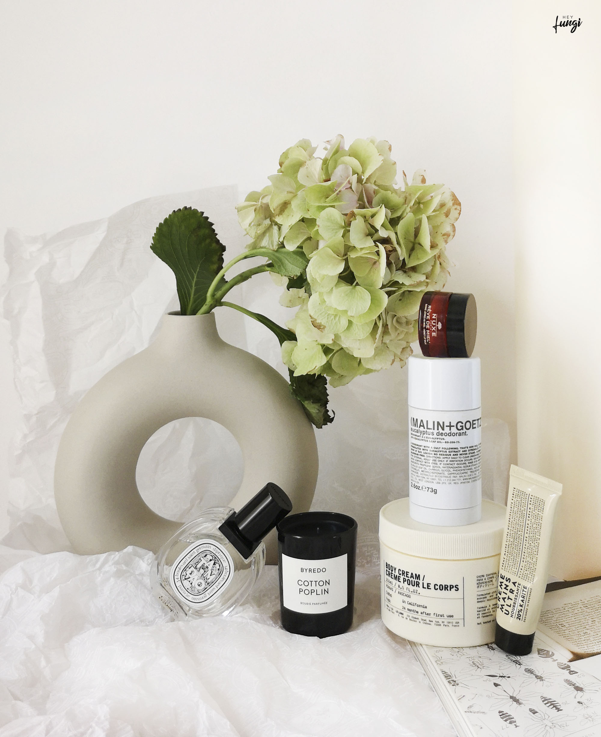 In this picture: Diptyque Tubereuse Candle + Byredo Cotton Poplin Candle