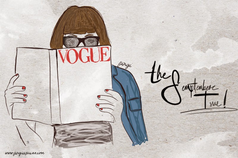 El artículo me pareció súper complejo cuando lo leí en Púrpura pero ahora que lo he vuelto a leer creo que ya tengo una opinión un poco más depurada al respecto. Considero que la September Issue de cierta forma se está convirtiendo totalmente en algo distorsionado, es decir, el hecho de que sea más publicidad que el contenido mismo deja mucho que pensar. ¿Dónde está quedando el trabajo como redactores? ¿Dónde está quedando el contenido sustancioso que la caracterizaba tiempo atrás? Considero que en cierta forma se está perdiendo esa esencia, es como cuando Chanel vendió su alma al demonio e implementó sneakers a sus colecciones o cuando Moschino decidió ser experimental fusionando elementos característicos de Dior, Versace y Chanel en sus colecciones… realmente dejó de ser lo que era. Entiendo que la publicidad es parte vital de la moda pero a veces creo que es una exageración y un poco innecesaria, ya que las marcas venden por sí solas al llevar de forma explícita el nombre de "Prada", "Balenciaga" o "Whatever you want". Hasta donde tenía entendido estaba el rumor de que pondrían a una chava muy guapa que era descendiente de Audrey Hepburn en la portada, o tal vez estoy confundiendo la portada. Igual es interesante que hayan optado por poner a 2 modelos que no son tan conocidas como Cara. Jamás terminaré de comprender del todo al mundo de la moda, pero lo compensa con bonita ropa. Amé la ilustración :B